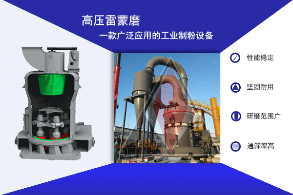高壓磨粉機是粉磨原理與雷蒙磨一樣的,但加入了高壓彈簧部分,因此在繼承了雷蒙磨高通篩率的同時,增加研磨范圍,因此也被稱作高壓雷蒙磨。